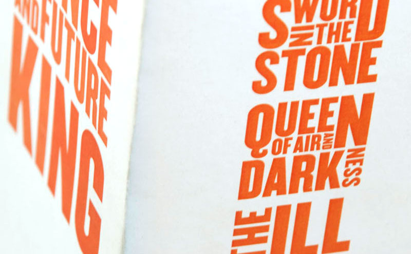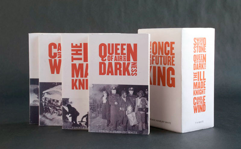 The Once and Future King, a book series written by T.H. White, tells the stories of King Arthur and the round table, Merlin the magician, Lancelot, and Guinevere. The stories were written between the war-plagued years of 1920 and 1945, so the design shows the influences of a time wrought with turmoil and human suffering.