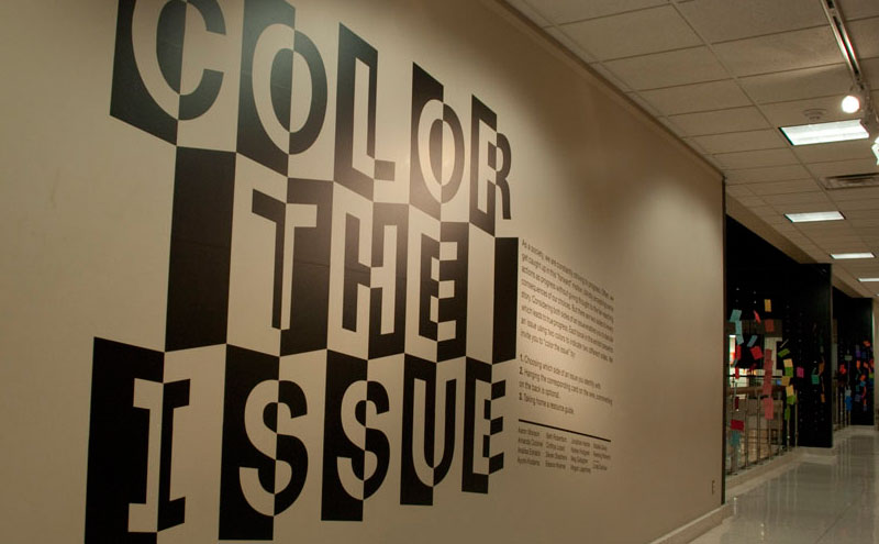 ‘Color the Issue’ was a group show wherein each of the 14 participating students selected an issue to explore. Every artist designed a poster and a book for the exhibit that showed the two sides of their particular issue.
